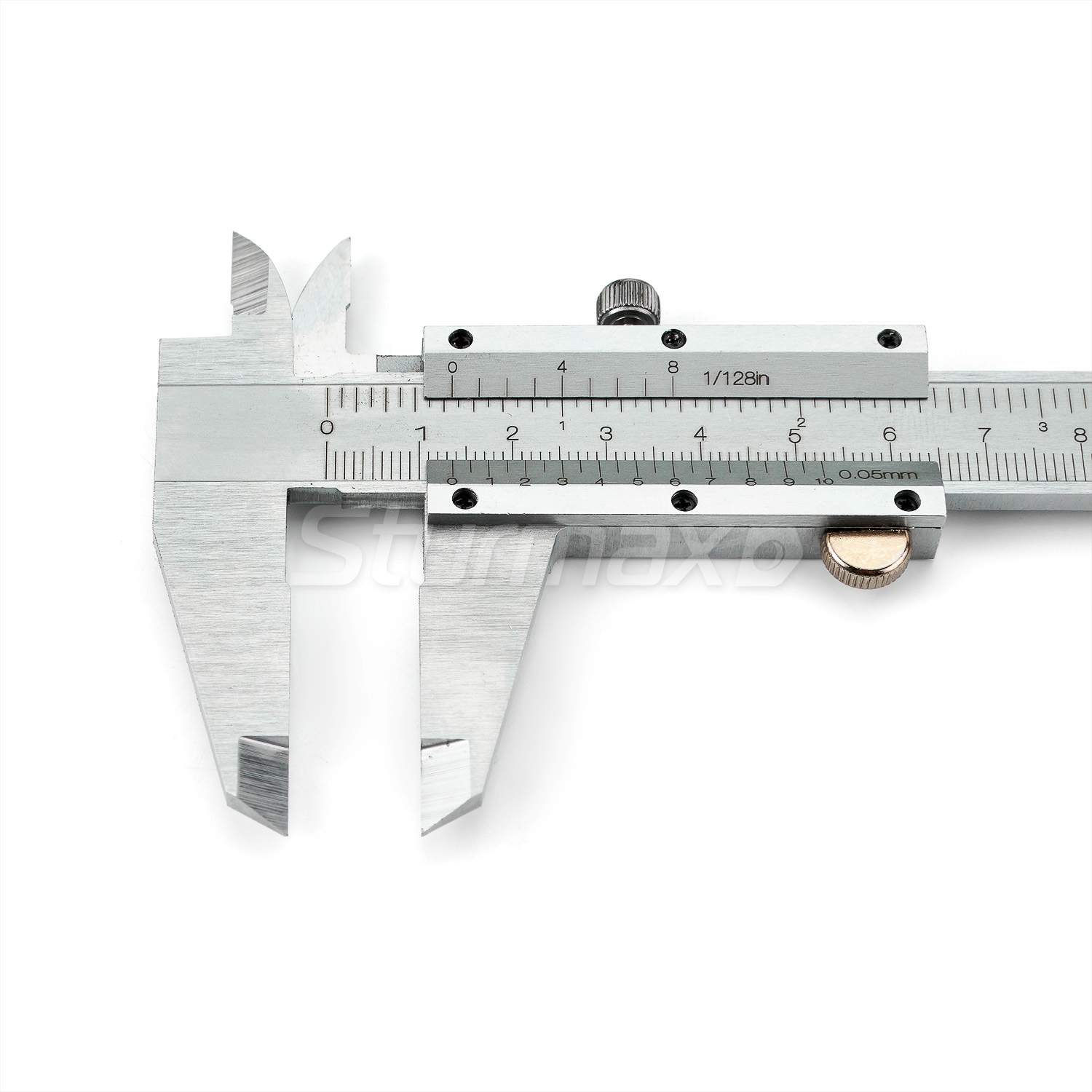 Sturmax 2030M-01-150 – універсальний штангенциркуль. Призначений для проведення внутрішніх, зовнішніх, глибинних вимірювань. Діапазон вимірювань від 0 до 150 мм, ціна поділки шкали 0,05 мм. Інструмент виготовлено з високоякісної неіржавкої сталі, завдяки чому він стійкий до корозії та механічних впливів. Ноніусна шкала з чіткими градуюваннями і зручна конструкція з плавним ходом губок і гвинтовим фіксатором забезпечують максимальну точність і надійність при використанні.