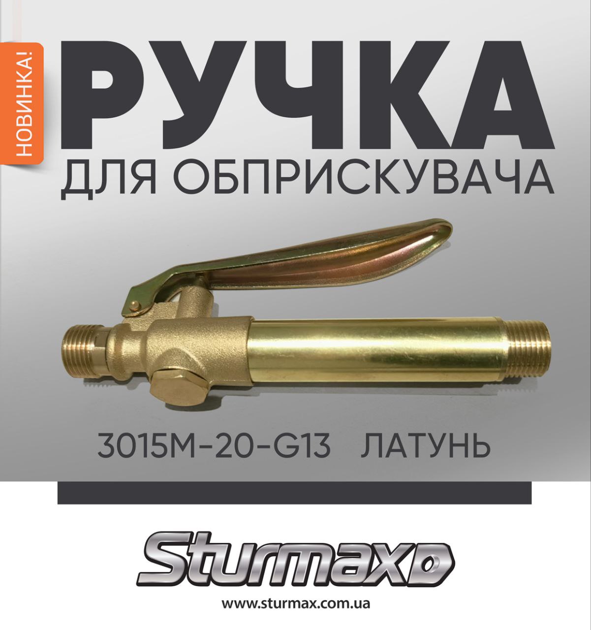 Sturmax 3015М-20-G13 – рукоять для акумуляторного садового обприскувача. Виконана з міцної латуні, що забезпечує довговічність і стійкість до агресивних розчинів.