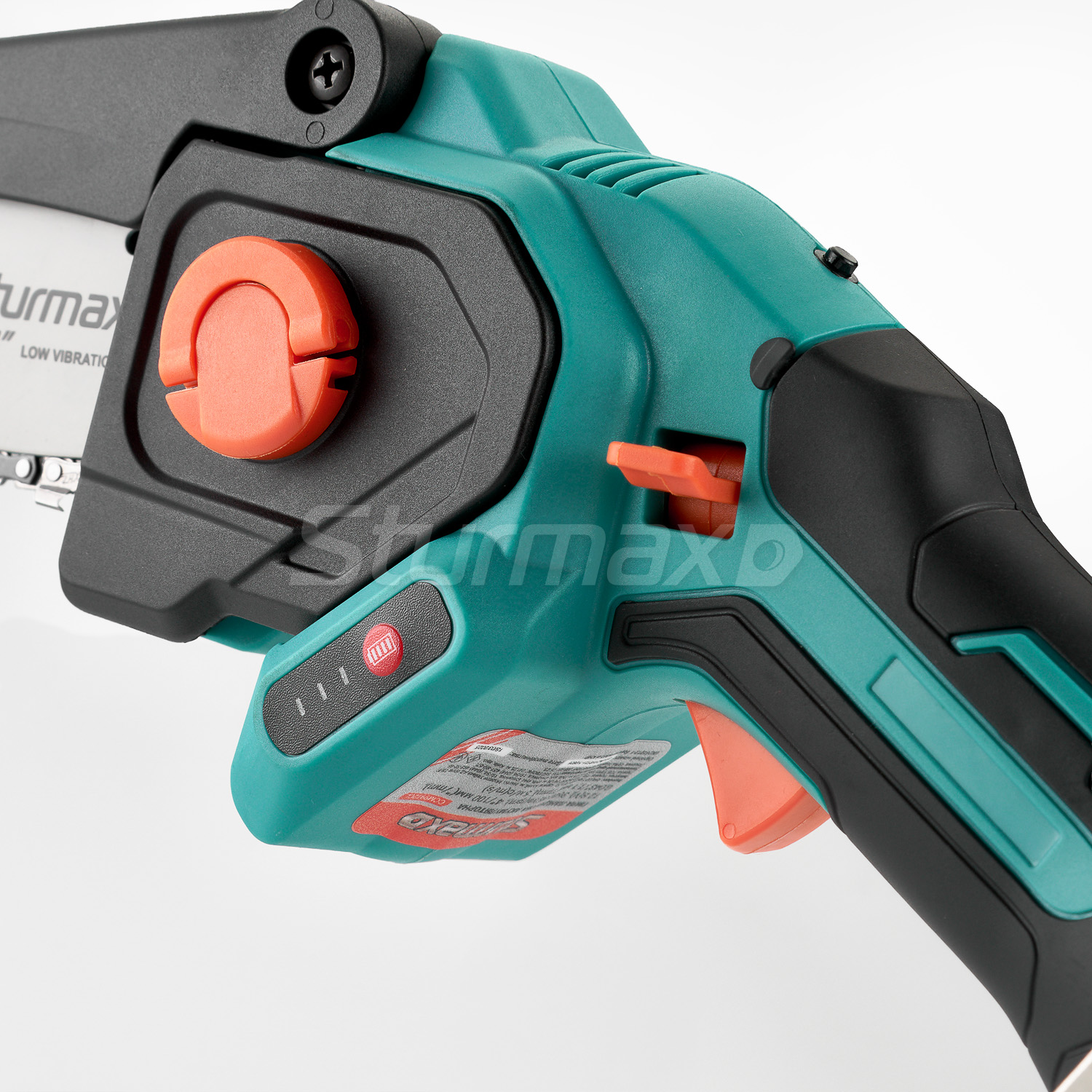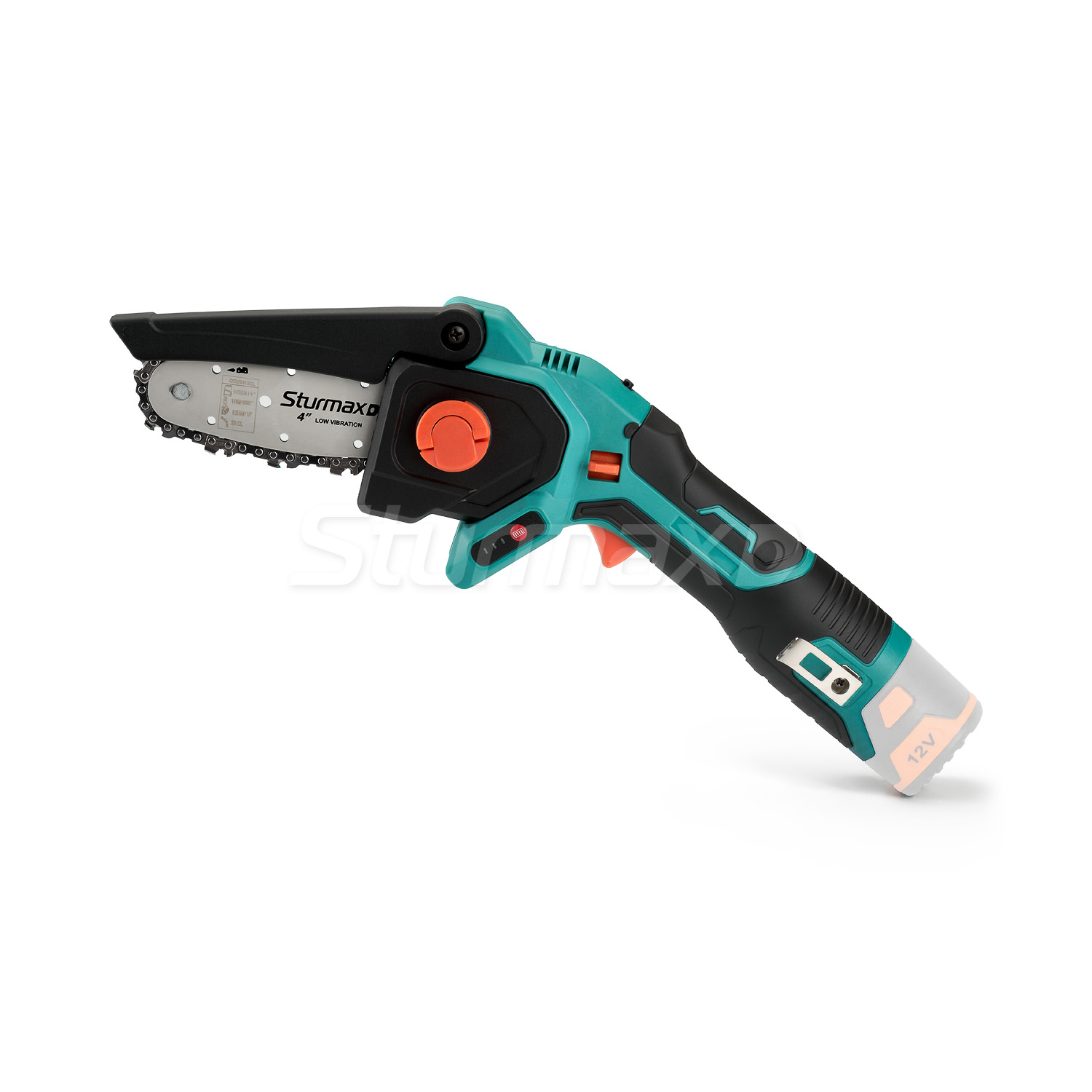 Sturmax CCM9912CL – акумуляторна ланцюгова міні-пила лінійки інструменту Sturmax під єдину 12В акумуляторну платформу. Пила має чудову ергономіку, а завдяки компактним габаритам і невеликій масі, маневрена і легка у використанні, зокрема, під час робіт в умовах обмеженого простору. Корпус виконаний з якісного ударостійкого пластику і надійно захищає інструмент від можливих механічних пошкоджень під час експлуатації. Модель оснащена надійним 12В електромотором і чотиридюймовою (100мм) пильною гарнітурою – відмінно підійде для обрізання тонких гілок, формування крони дерев і виконання невеликих садових або побутових завдань. Для безпеки користувача інструмент обладнаний захистом від випадкового ввімкнення. Наявність LED підсвічування робочої зони дає змогу впевнено використовувати інструмент навіть в умовах із недостатнім освітленням. Візуальний контроль стану заряду АКБ забезпечує індикатор заряду на корпусі.