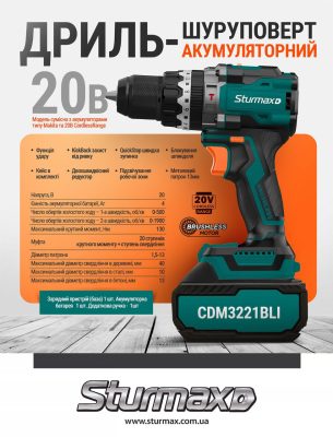 Sturmax CDM3221BLI Дриль-шурупокрут акум. 20В, без акумулятора та зарядного