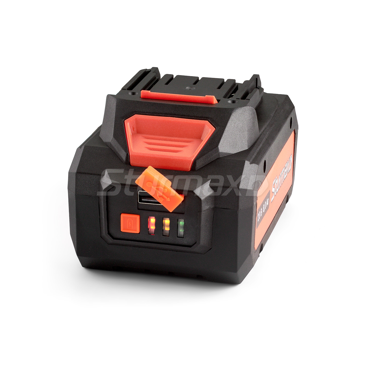 Sturmax CRM2008B – акумуляторна батарея збільшеної ємності лінійки інструменту Sturmax Cordless Range. Напруга – 20 В. Ємність – 8 А·год. Оснащена фірмовими елементами SunPower, які забезпечують високу надійність і тривалий термін служби, а також системою захисту від перезарядження і перерозрядження. Передбачено індикатор рівня заряду, що дозволяє візуально контролювати залишковий заряд батареї, а також USB-порт для підзарядки мобільних пристроїв і гаджетів.