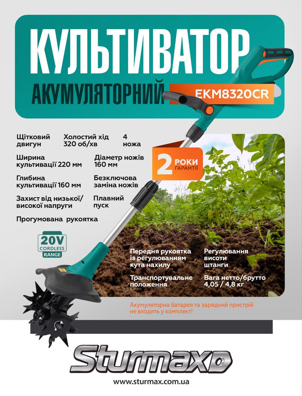 Sturmax EKM8320CR Культиватор акумуляторний 220мм, 20В, без акум. та зарядк. серія Cordless Range