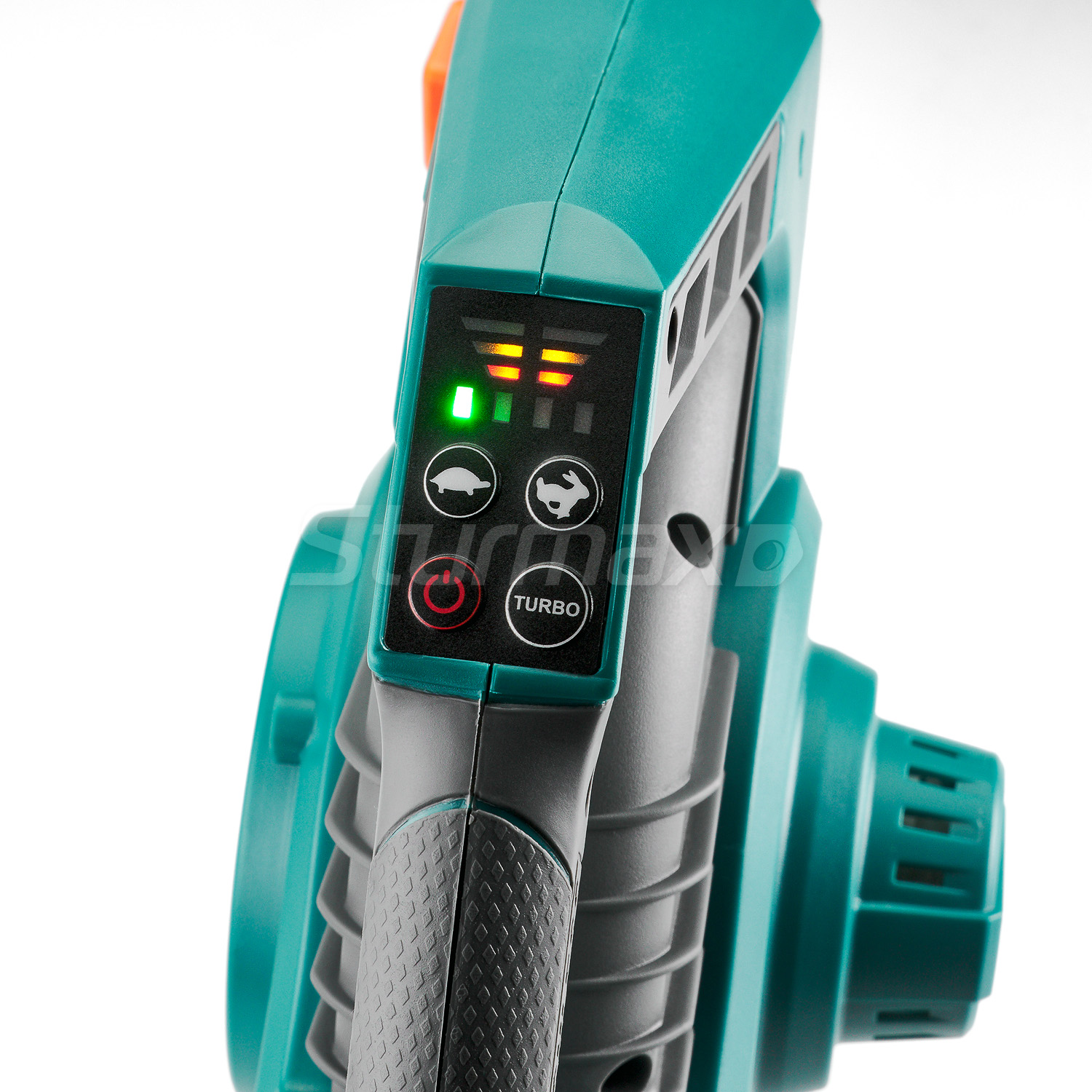 • Чотири швидкості роботи + режим Turbo – дозволяють точно налаштовувати повітряний потік під конкретне завдання: від делікатного прибирання сухого листя на клумбах до потужного видування вологого сміття чи будівельного пилу; режим Turbo забезпечує максимальну продуктивність при короткочасних навантаженнях, наприклад, для очищення щілин, важкодоступних ділянок або щільних забруднень.