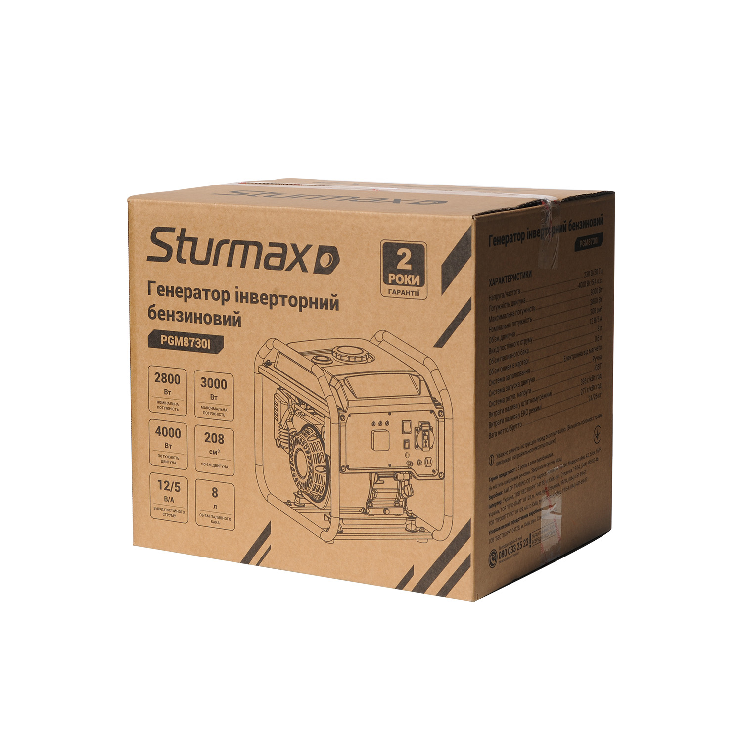 Гарантійні зобов’язання: на бензиновий інструмент Sturmax діє гарантія 24 місяці.