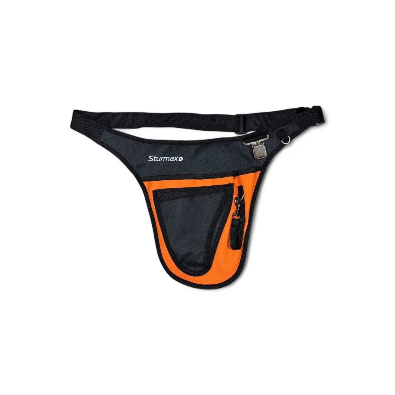 Sturmax TBM011 — садова поясна сумка-кобура для інструментів. Габаритні розміри — 500×330 мм. Призначена для зручного носіння та зберігання садового інвентарю, такого як секатори, садові ножиці, ножі та інші підручні інструменти, безпосередньо на поясі користувача. Модель оснащена регульованим ременем із надійним фіксатором. Виготовлена з міцного, зносостійкого матеріалу, який легко очищується від забруднень і витримує інтенсивну експлуатацію. Спеціальна форма кобури та наявність додаткових кріплень дозволяють надійно зафіксувати інструмент і завжди тримати його під рукою, зберігаючи повну свободу рухів.